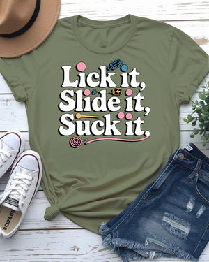 Lick It, Slide It, Suck It – Ice Lolly Funny Tee | Memez Store