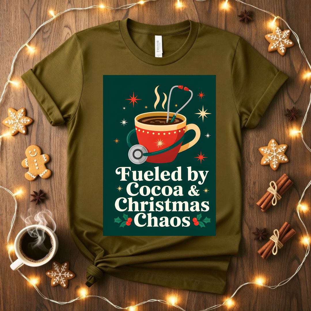 Fueled by Cocoa and Christmas Chaos Tee - Surviving the Holiday Hustle