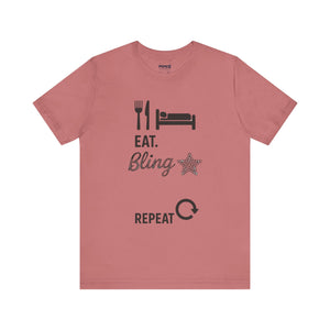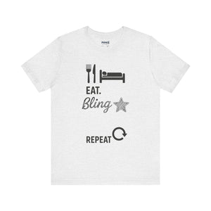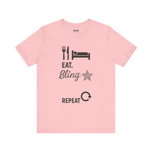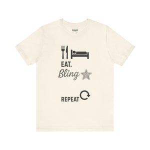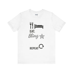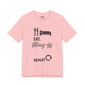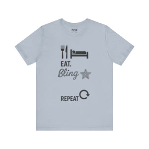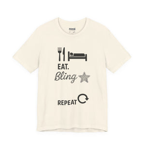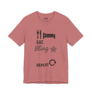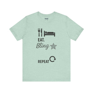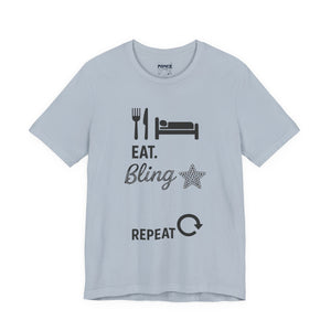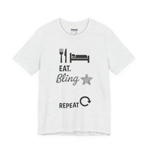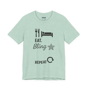 This Eat Bling Repeat Meme Tee by Memez store exudes a fun and trendy vibe, perfect for those who love memes and want to make a fashion statement. It is ideal for casual wear and can be a great conversation starter. This Tee is relevant for meme enthusiasts and casual fashionistas, perfect for birthdays, holidays, and everyday wear.