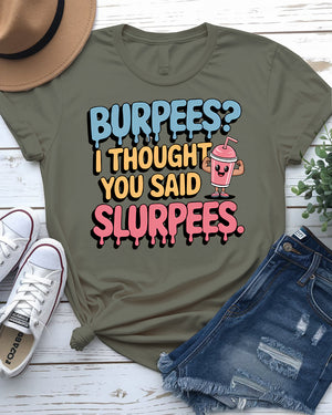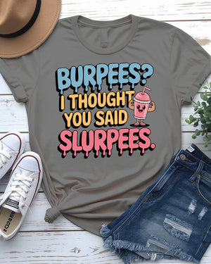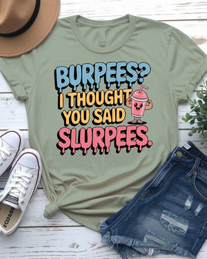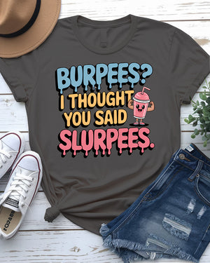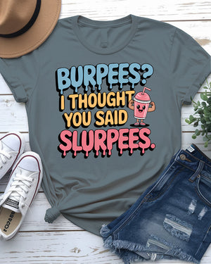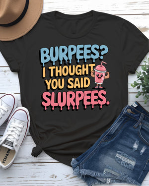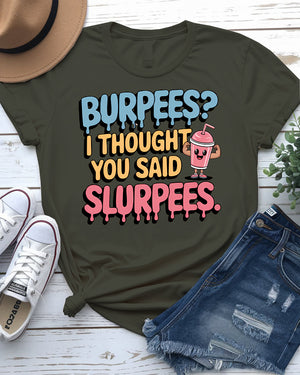 Burpees? I Thought You Said Slurpees Tee – Meme Shirt
