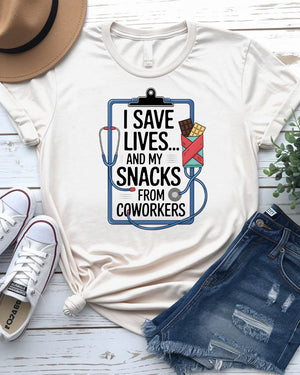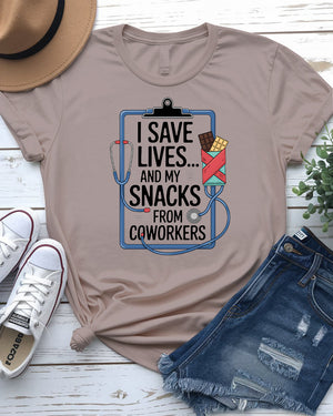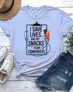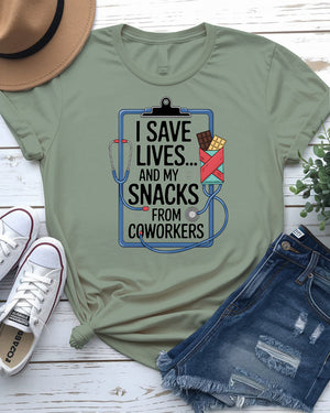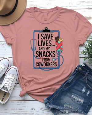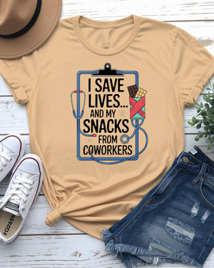 I Save My Life and My Snacks – Funny Coworker Meme Tee by Memez Store