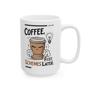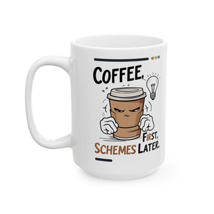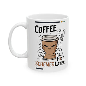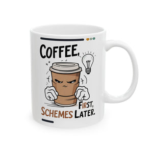 This Coffee First Schemes Later Funny Ceramic Mug by Memez Store is perfect for coffee lovers with a sense of humor. Start your day with a laugh and your favorite brew in this vibrant and durable mug. Ideal for daily use or as a gift for friends and family who appreciate a good meme.