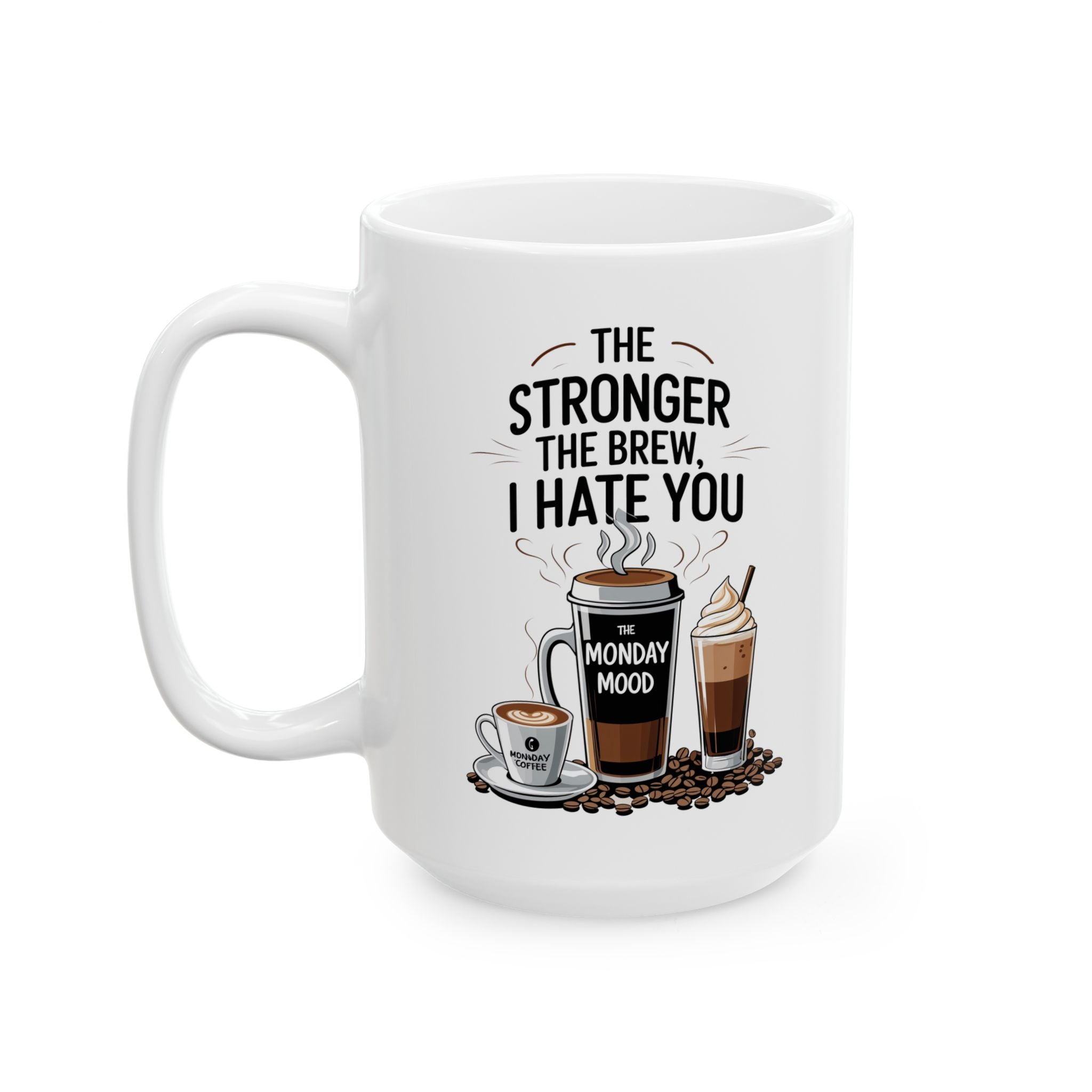Funny Coffee Mug - The Stronger The Brew I Hate You Ceramic Mug (11oz, 15oz)