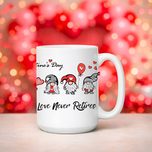 Love Never Retires Day Ceramic Mug — “Love” 11oz & 15oz