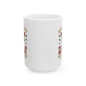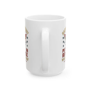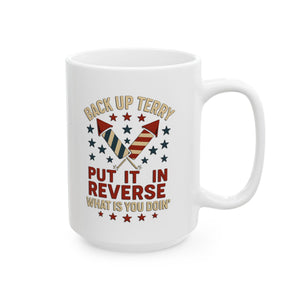 This Backup Terry funny 4th of July Ceramic Mug by Menez Store is perfect for anyone looking to add some humor and patriotism to their morning routine. The glossy finish and vibrant colors make it a fun and quirky addition to your kitchen. Ideal for those who enjoy celebrating 4th of July and appreciate a good laugh with their coffee or tea.
