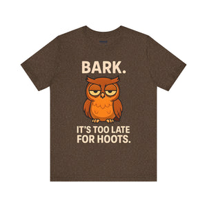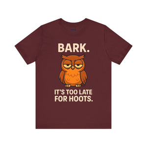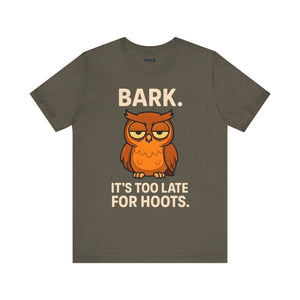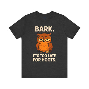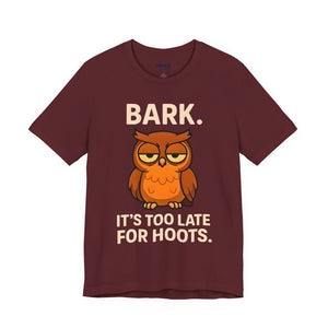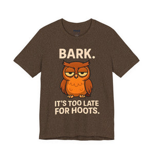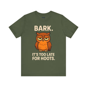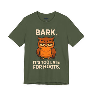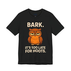 Bark Its Too Late for Hoot Animal Meme Funny Tee