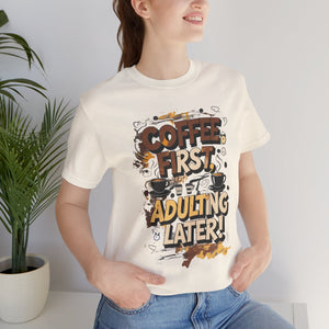 Coffee First Unisex Tee by Memez Store
