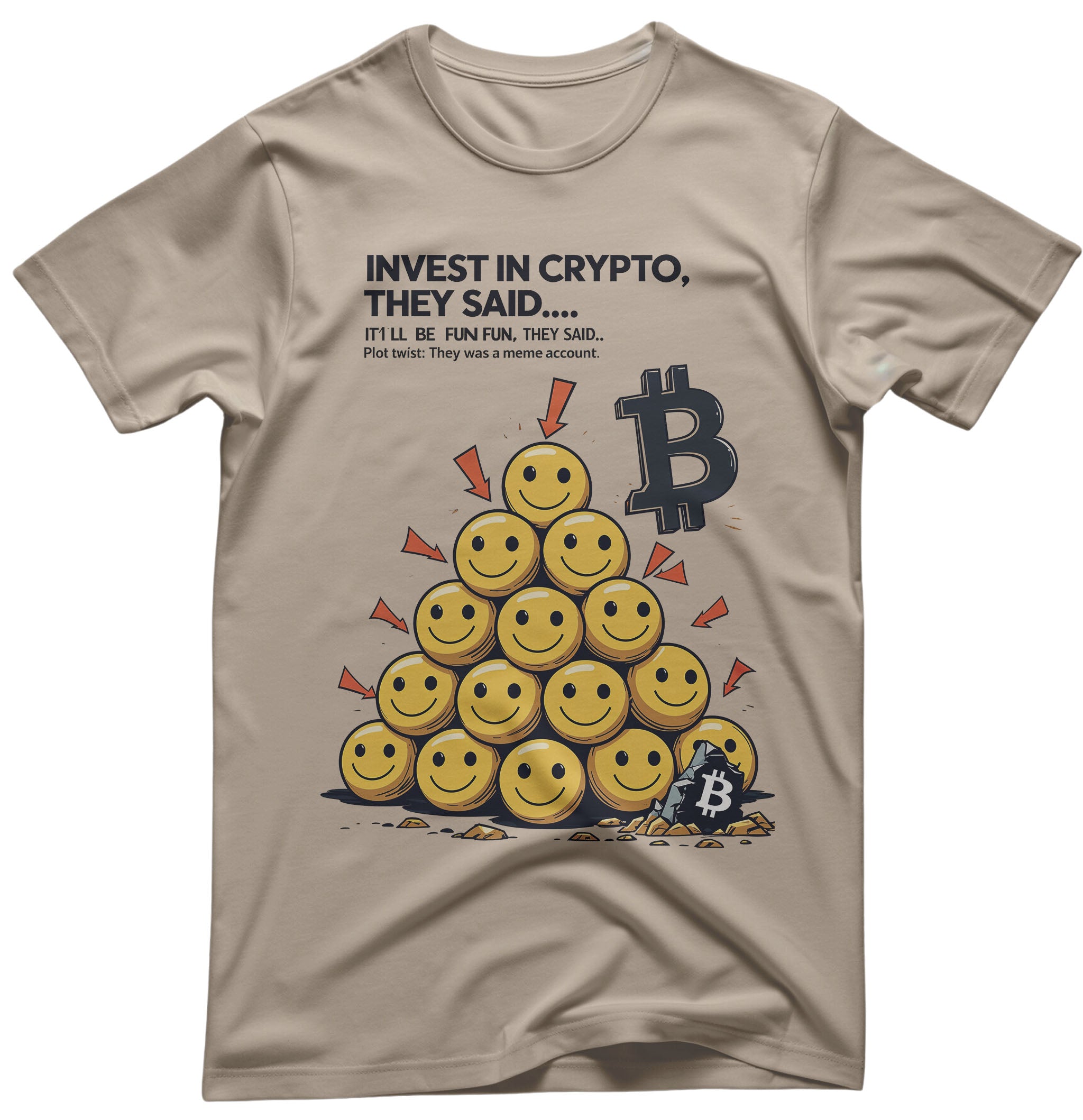 "Whether you’re bullish on Bitcoin or just love a good ‘rekt’ joke, the Crypto Meme T-shirt is your uniform for the blockchain revolution. With its snug fit and unapologetic wit, it’s the ultimate way to flex your crypto cred. Add to cart—no seed phrase required!"