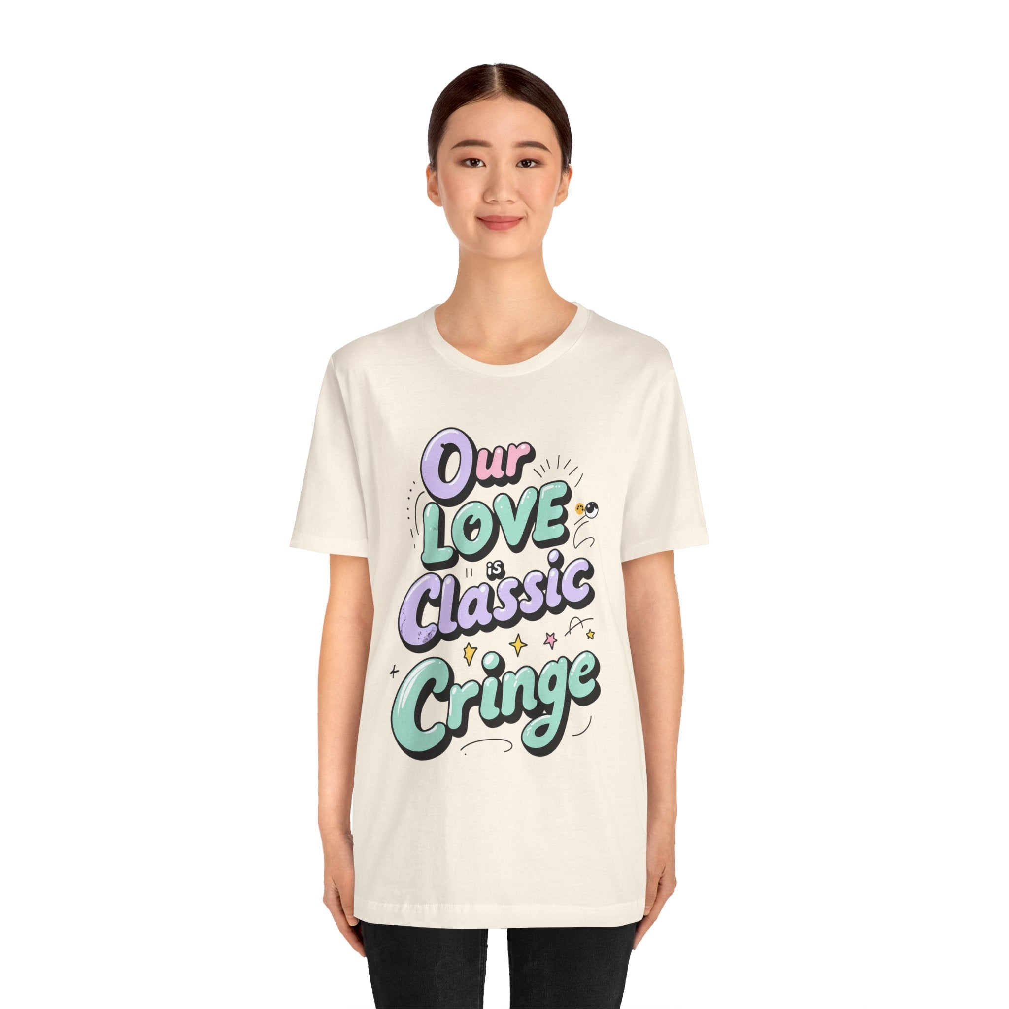 Our Love Classic Cringe Funny and Meme T-shirt is a must-have for those looking to add some humor to their wardrobe. This tee exudes a quirky and playful vibe, perfect for casual outings or lounging at home. Ideal for meme enthusiasts and those with a love for all things funny. Great for gifting on birthdays, holidays, or just because.