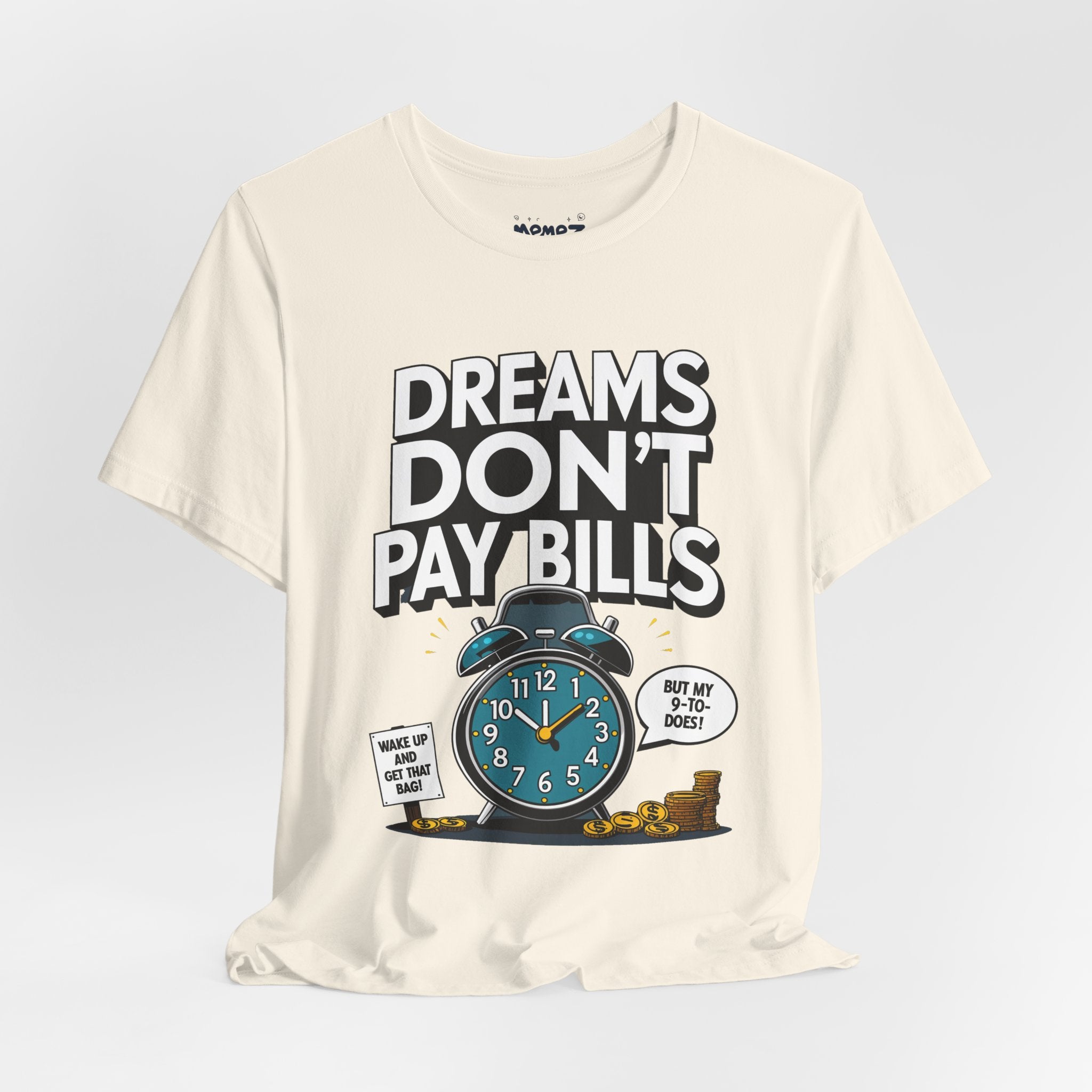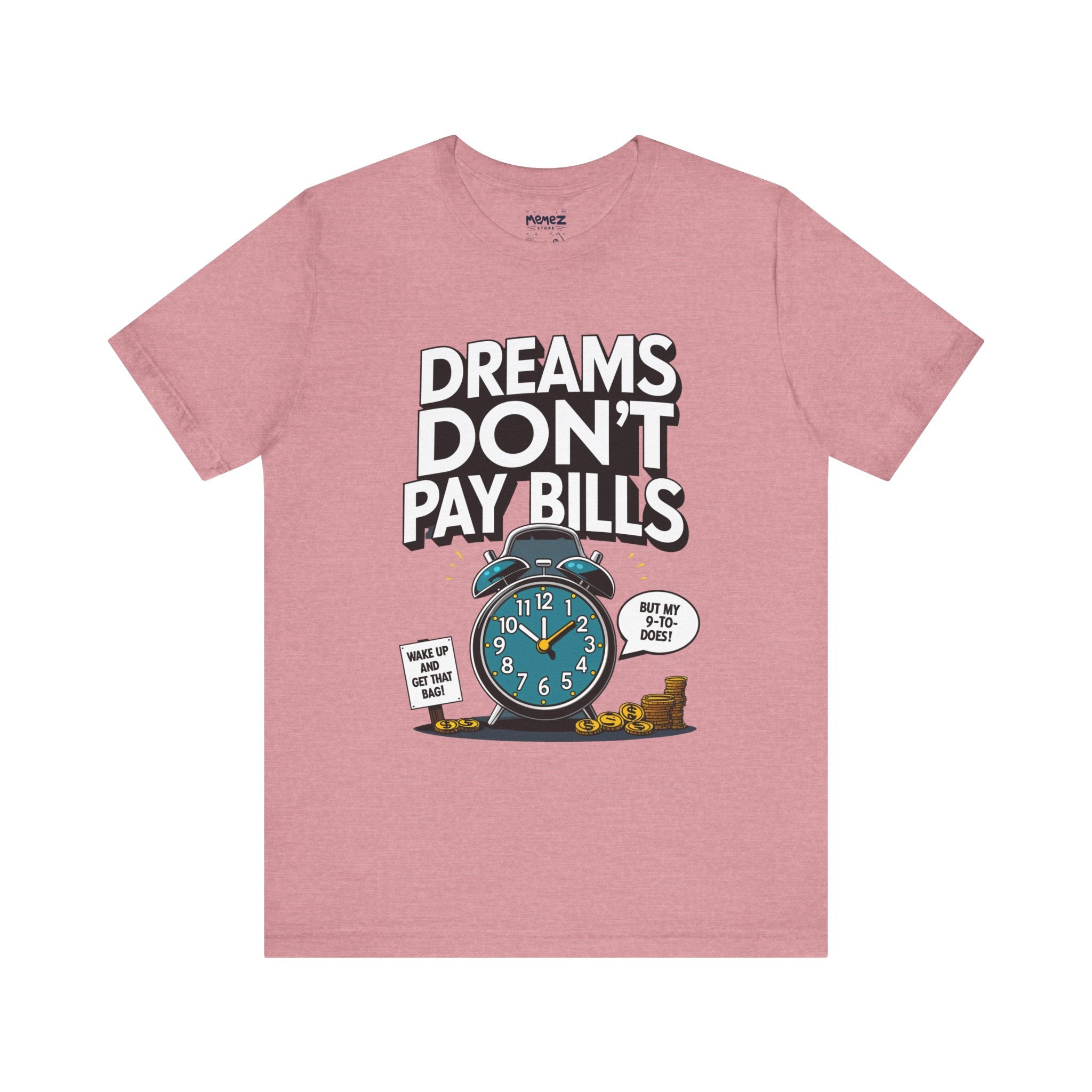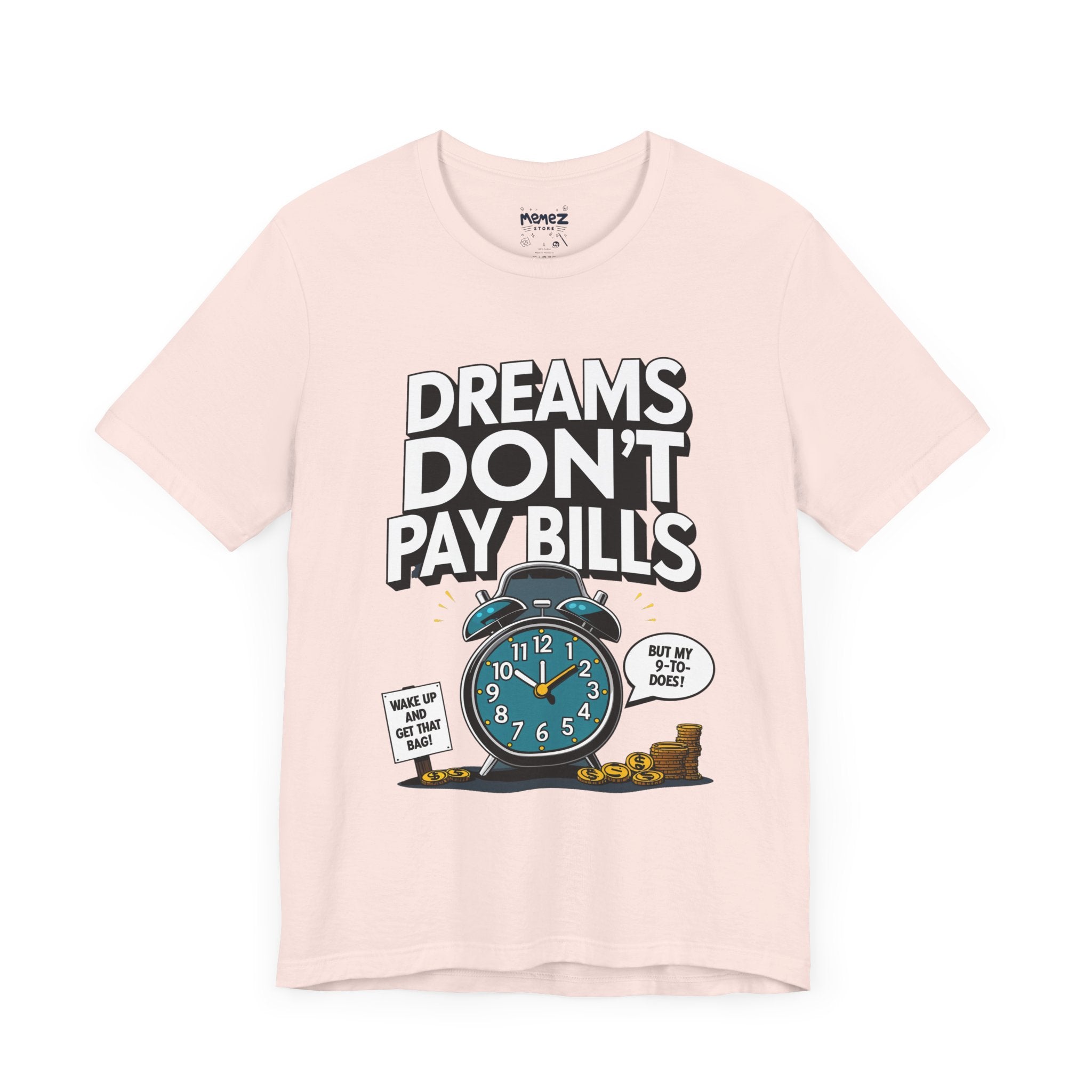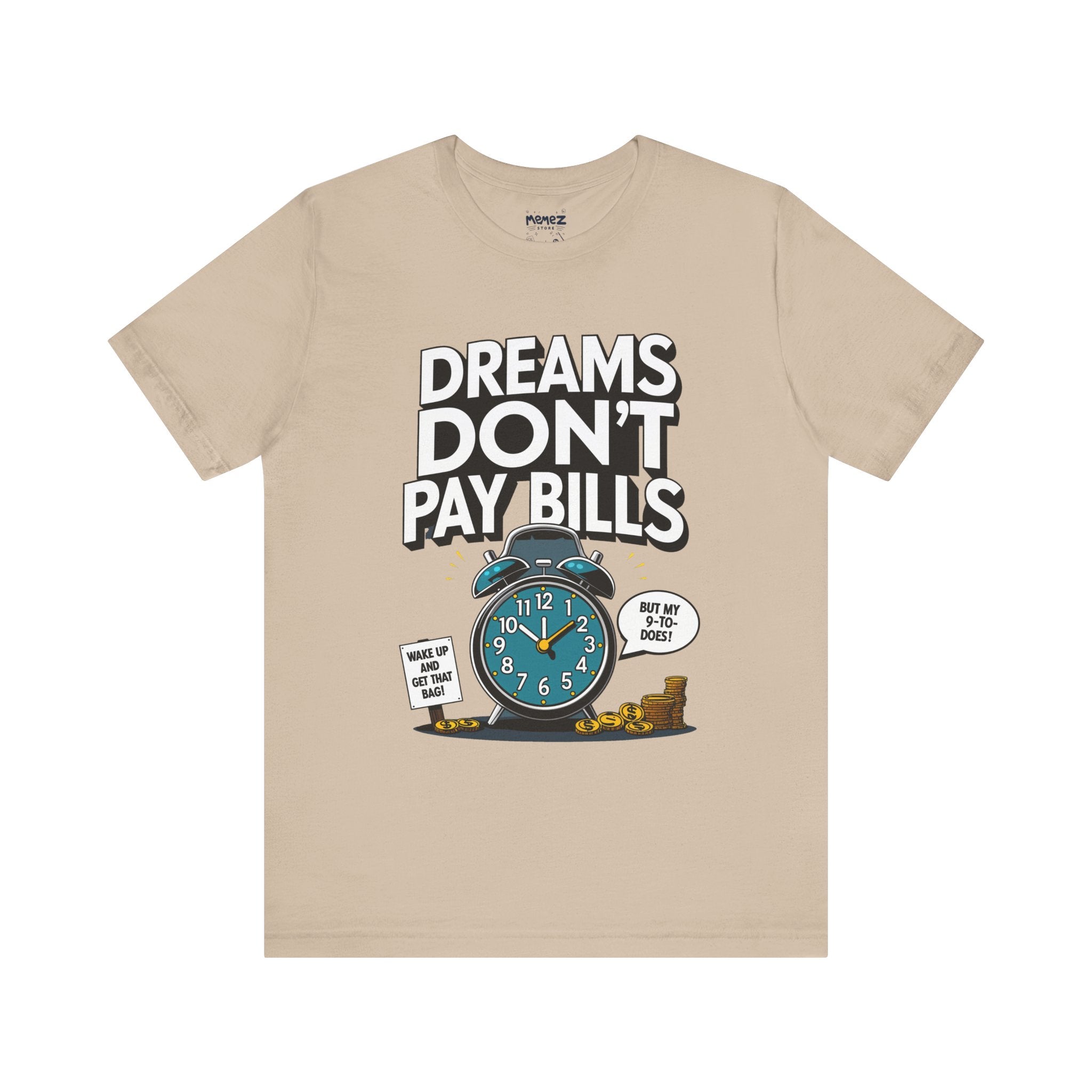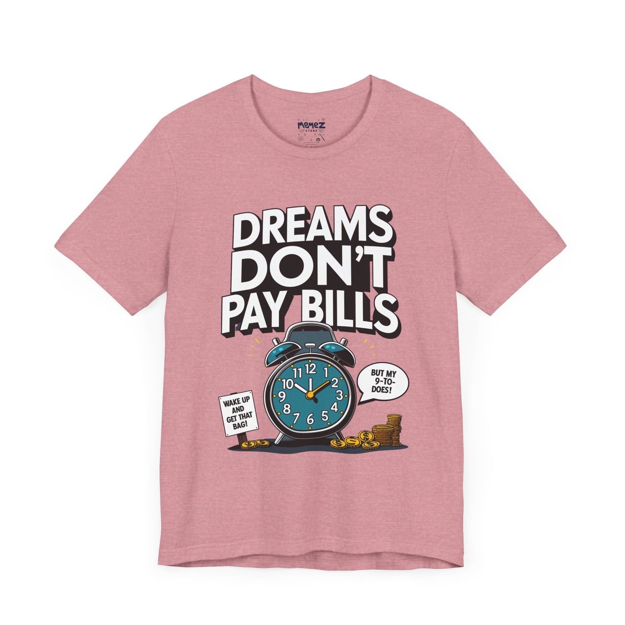Dreams Dont Pay Bills a Funny and Memez tee by Memez Store. This T-Shirt exudes a casual and humorous vibe, perfect for those who love meme culture and want to make a statement. Ideal for everyday wear or as a conversation starter at social gatherings. Relevant for holidays like April Fools' Day or casual Fridays at work.