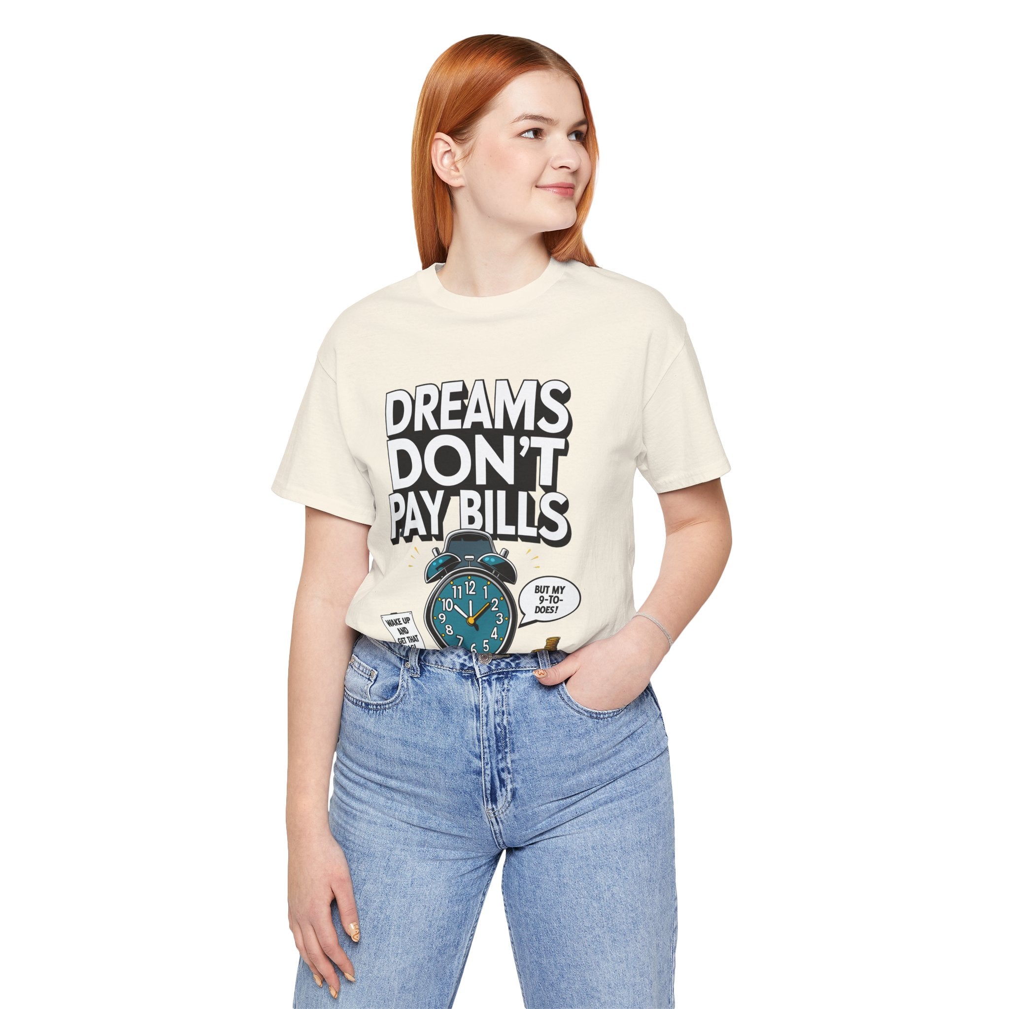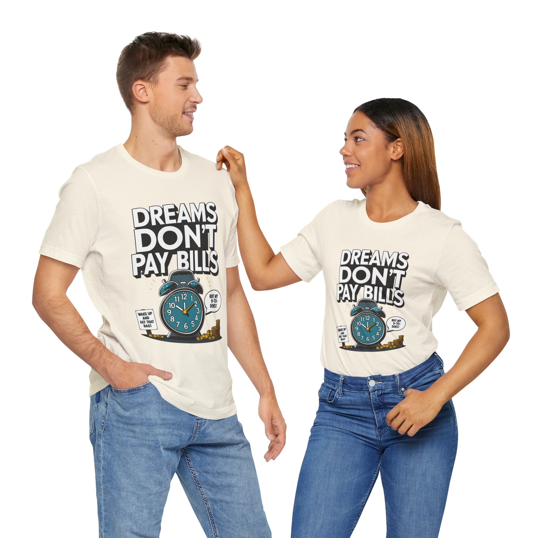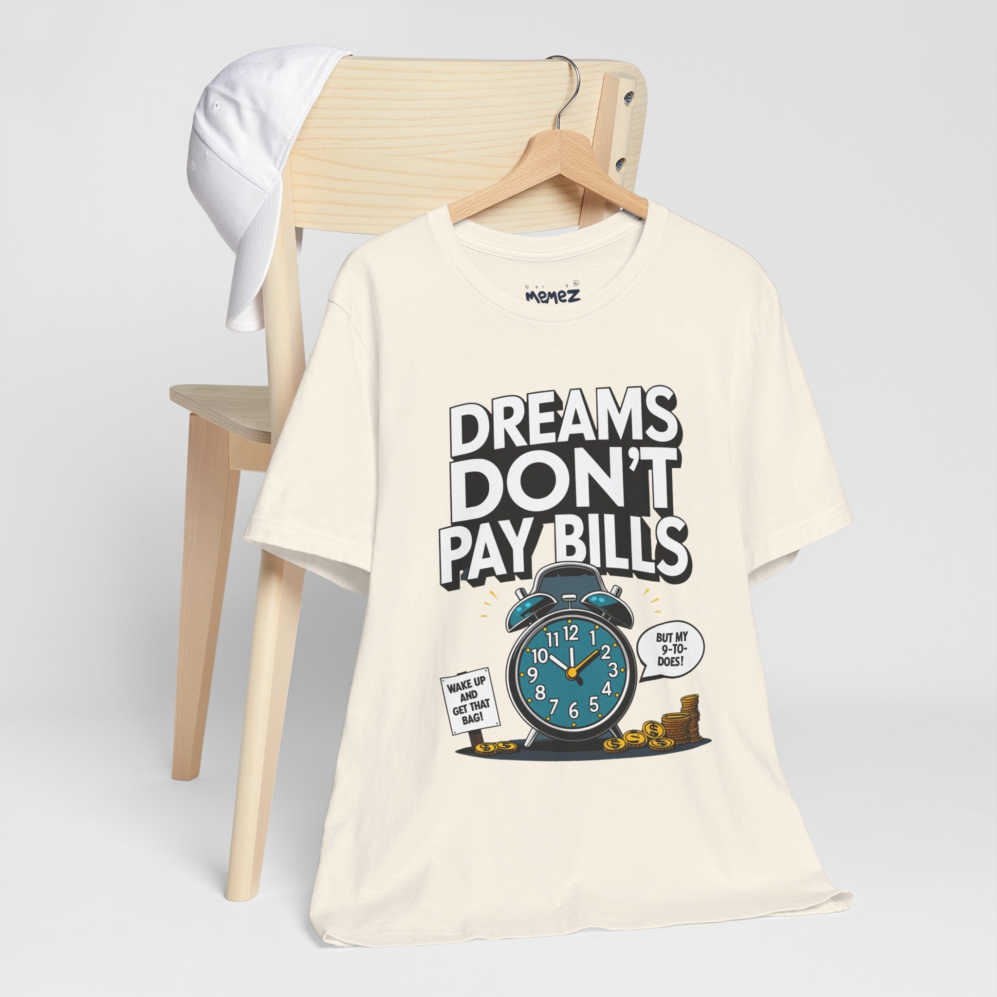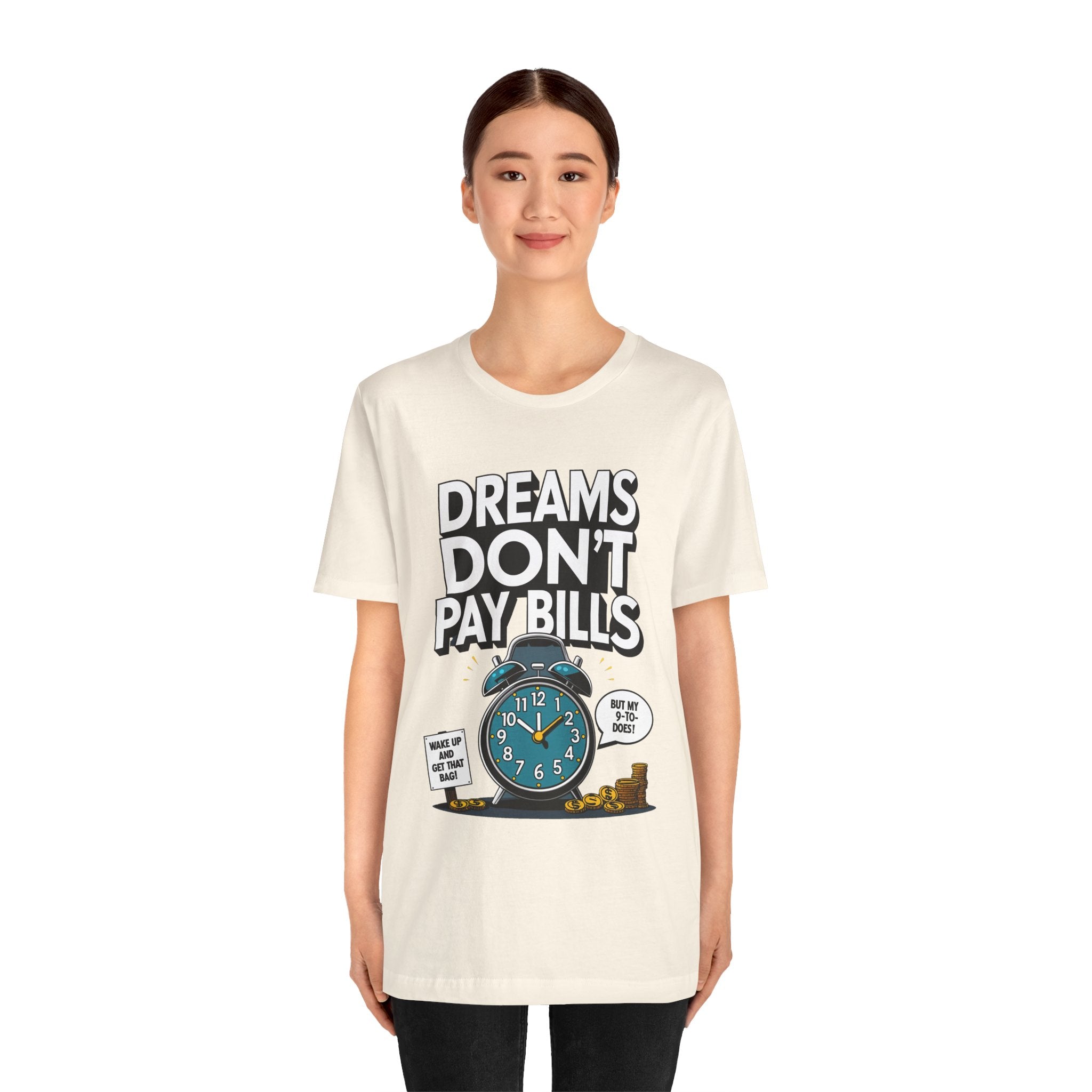Dreams Dont Pay Bills a Funny and Memez tee by Memez Store. This T-Shirt exudes a casual and humorous vibe, perfect for those who love meme culture and want to make a statement. Ideal for everyday wear or as a conversation starter at social gatherings. Relevant for holidays like April Fools' Day or casual Fridays at work.
