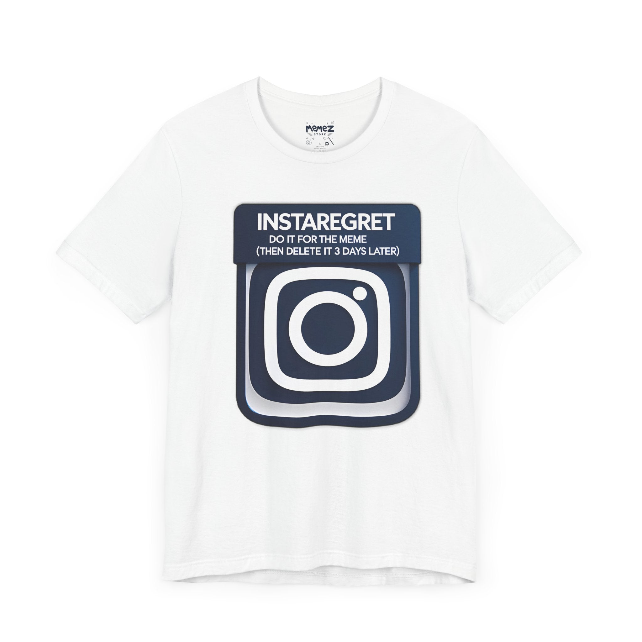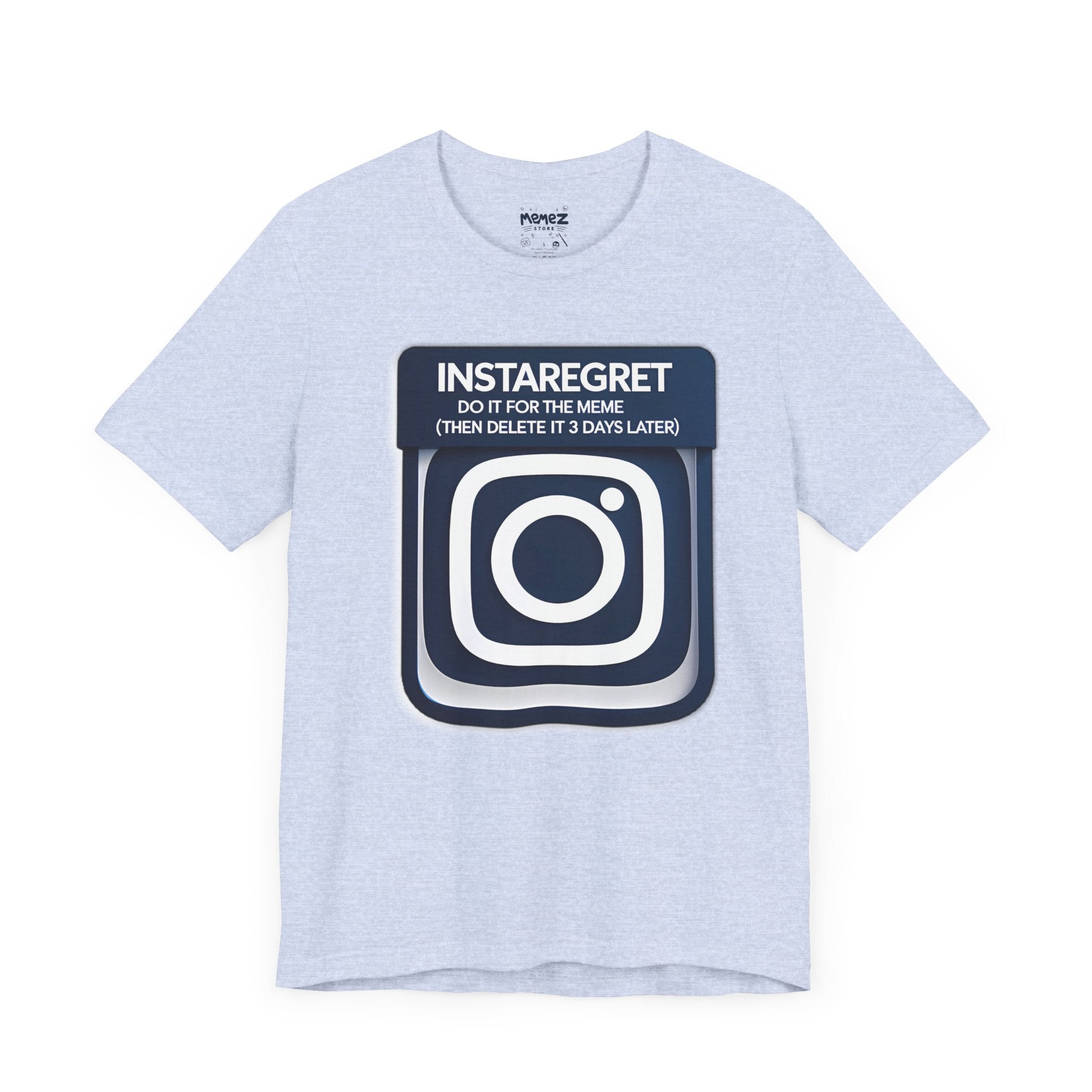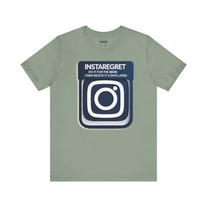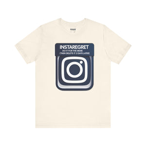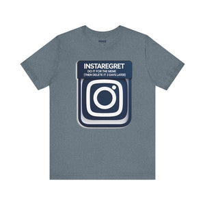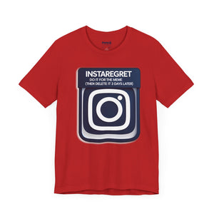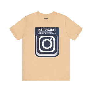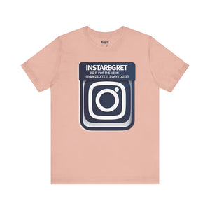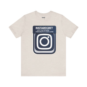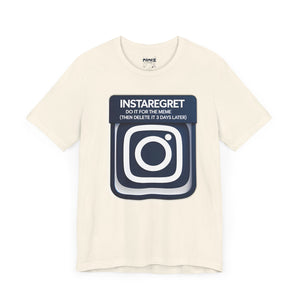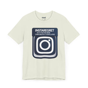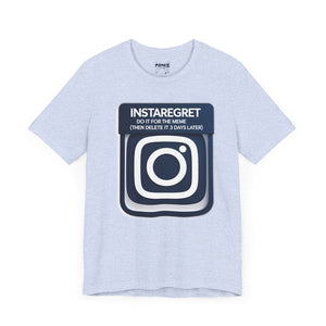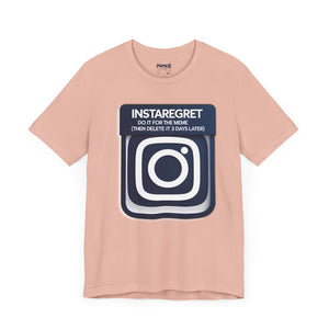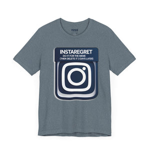 This Instaregret Parody Tee is a fun and quirky addition to your wardrobe, providing a humorous and light-hearted vibe for everyday wear. Perfect for meme lovers and those with a good sense of humor. Ideal for casual outings, lounging at home, or gifting to friends with a similar sense of humor. Relevant for birthdays, holidays, and casual celebrations.