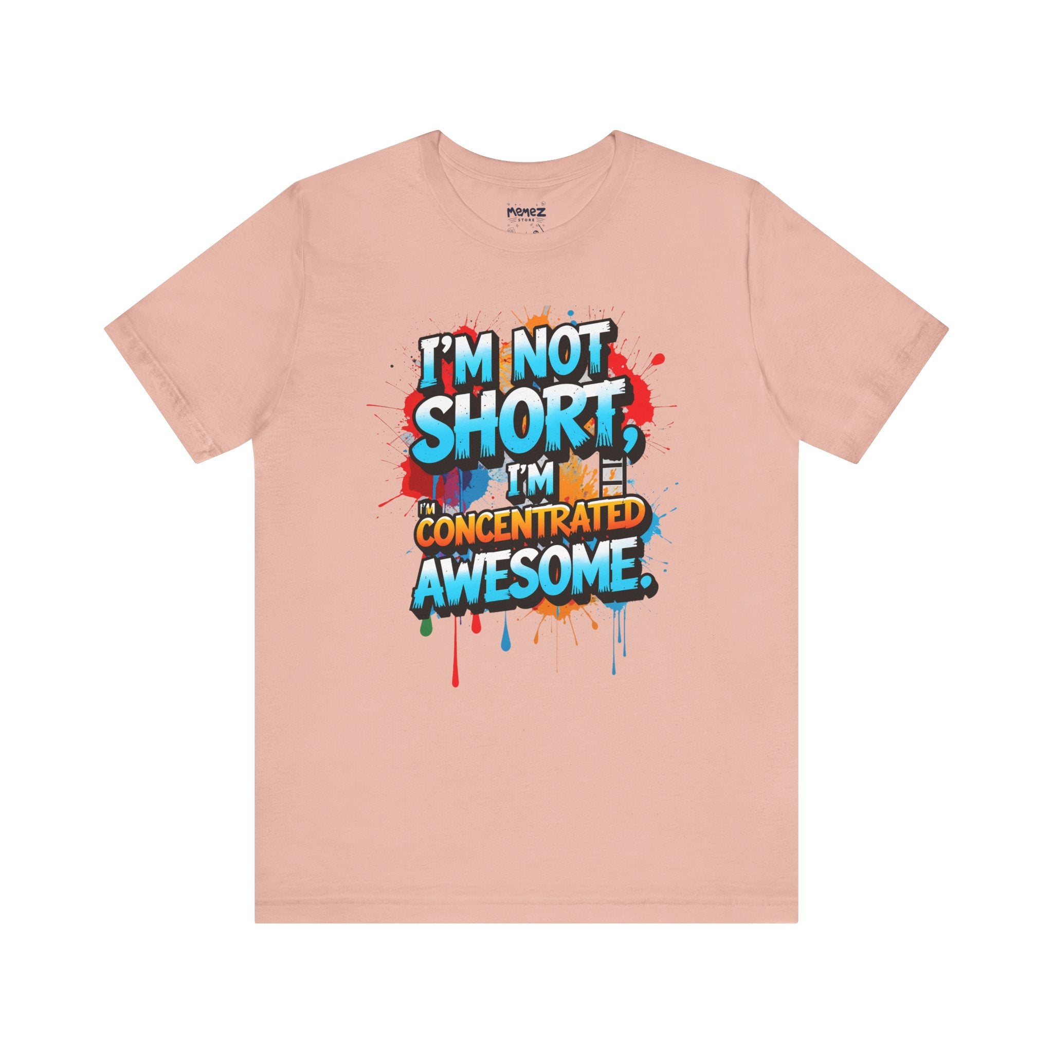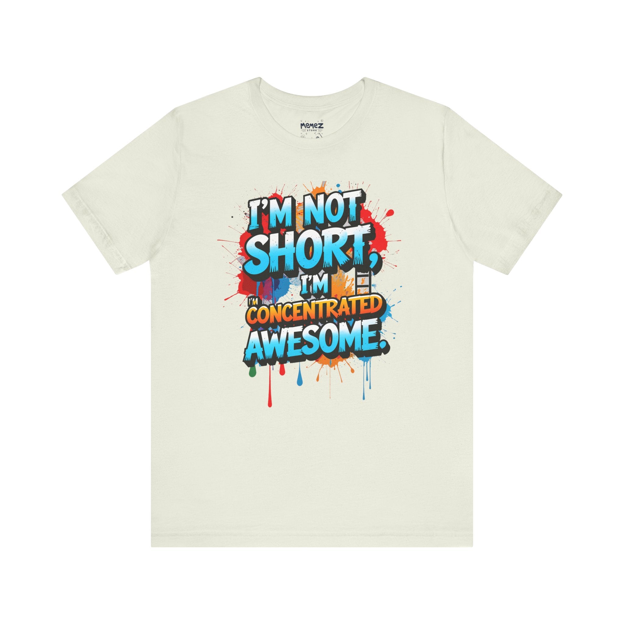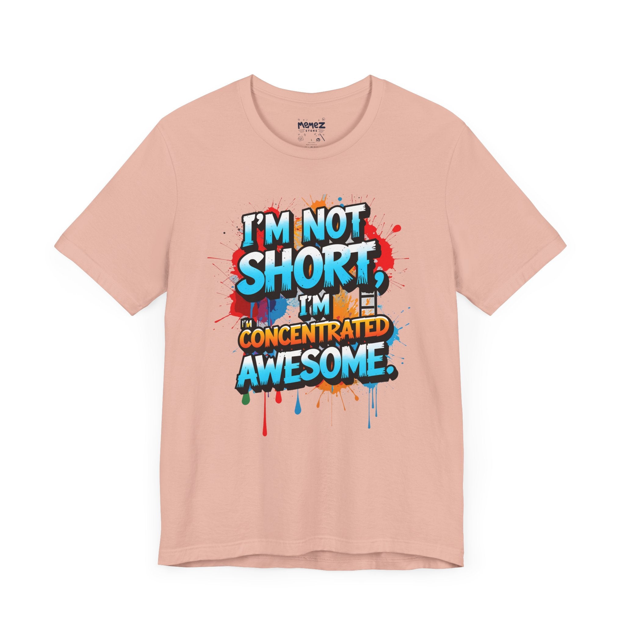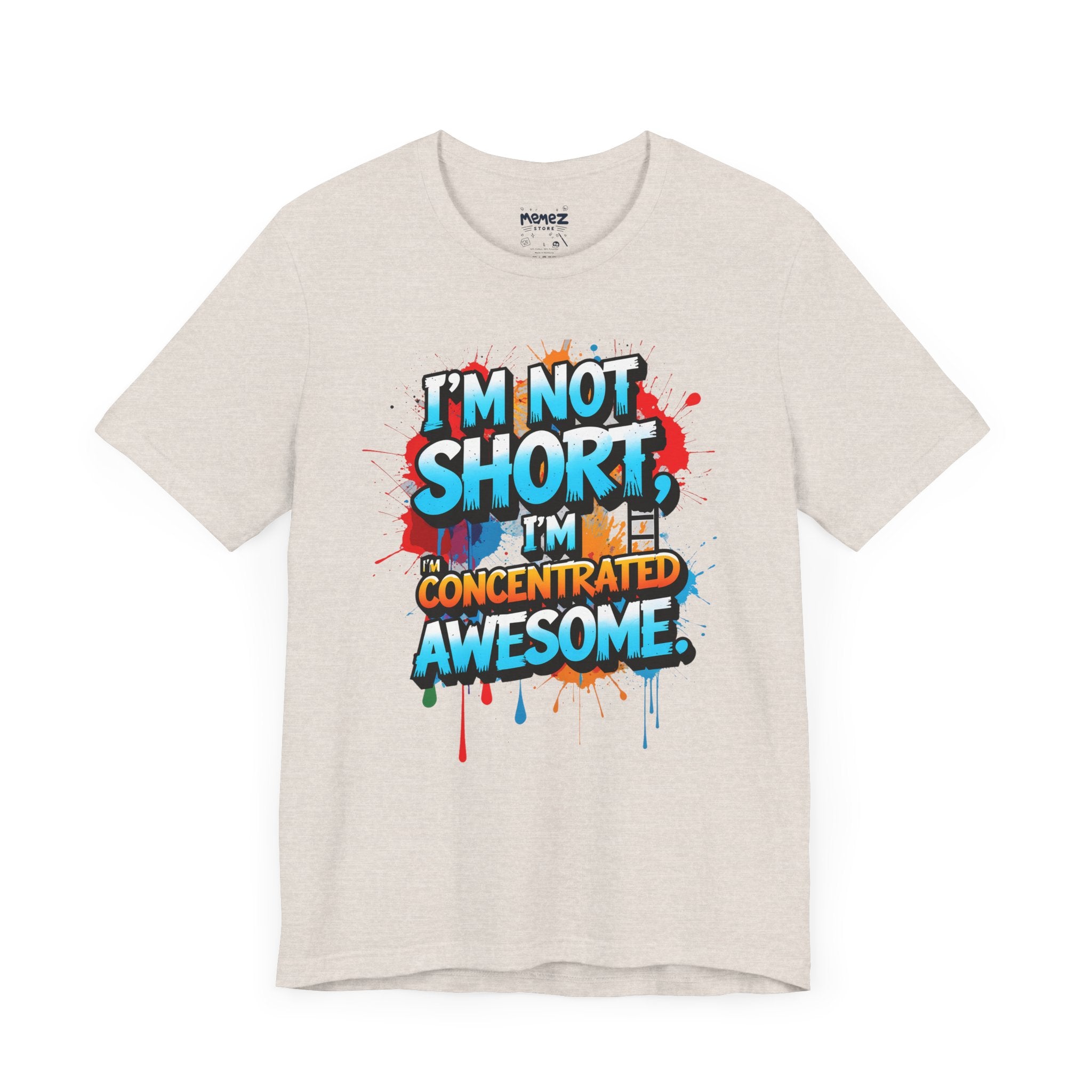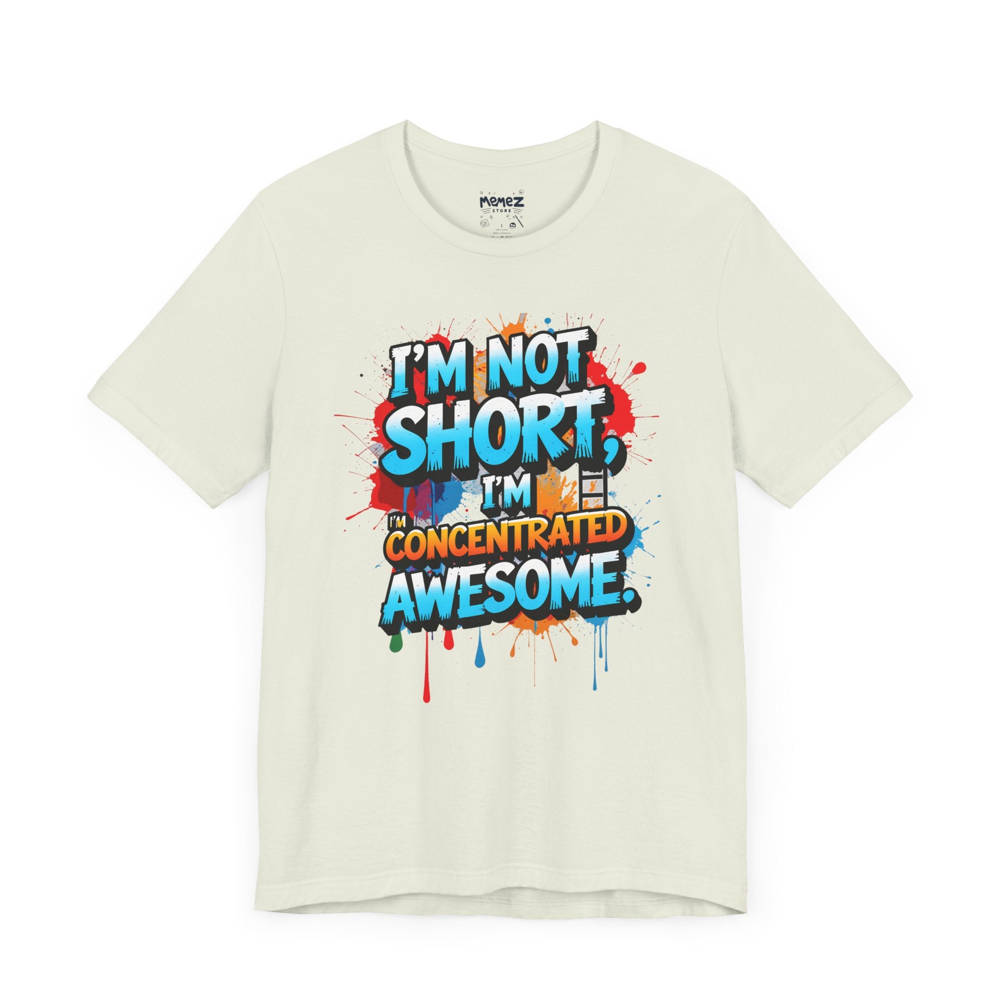 This T-Shirt features a fun and empowering message that reads 'i am not short i am concentrated Awesome'. It is made with 100% Airlume combed and ring-spun cotton, making it lightweight and breathable, perfect for daily wear. The retail fit and crew neckline add a classic style that can be dressed up or down. Ideal for those looking for a comfortable and stylish tee with a bold statement.