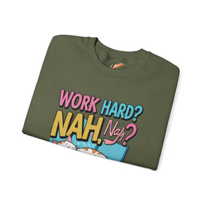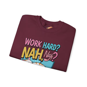Stay cozy and stylish with this Working Hard Nap Harder meme and funny sweatshirt. Perfect for lounging around or staying warm during the colder months. This unisex sweatshirt is designed for adults who enjoy a good laugh and appreciate a comfortable fit. Ideal for casual wear, weekends, and relaxed gatherings with friends.