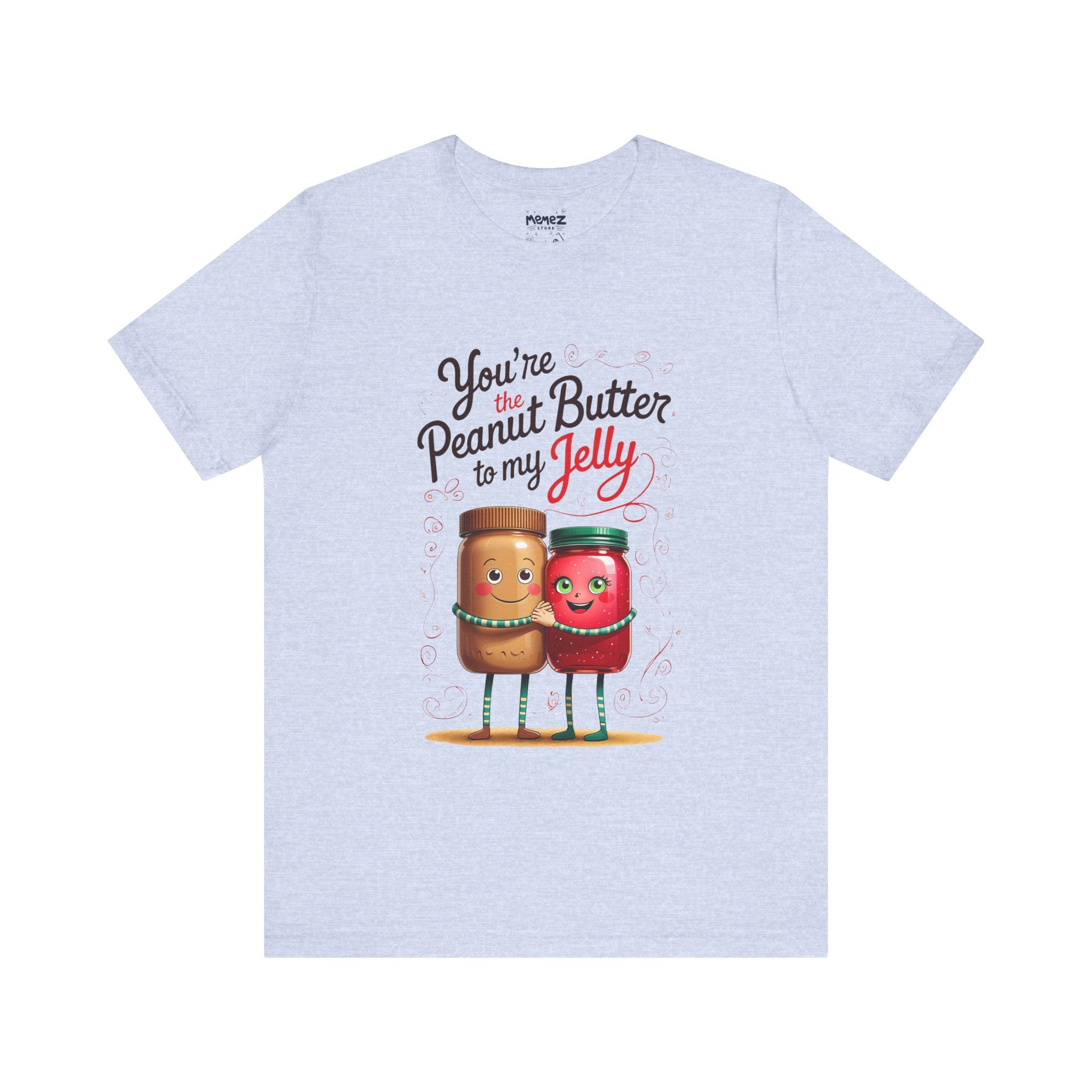 This T-Shirt features a funny food meme design that says 'You are Peanut Butter T My Jelly.' It adds a playful and light-hearted vibe to your wardrobe, perfect for those who enjoy humor and memes. This tee is relevant for casual wear, hanging out with friends, or attending casual gatherings. It is ideal for individuals who appreciate quirky and fun fashion choices. Perfect for occasions like casual Fridays, parties, and everyday wear.