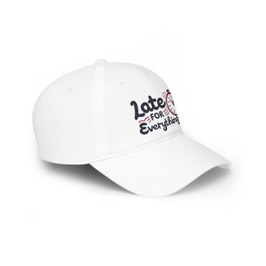 Funny Late for Everything Baseball Cap - Casual Red Hat for Everyday Wear